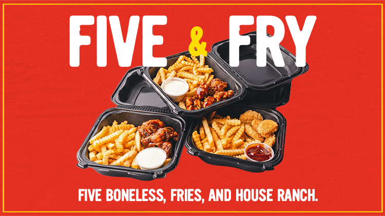20 Boneless Wings. Large Fry. One Bangin Price.