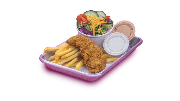 two hand-breaded tenders. choice of side. sauce. 20oz drink.