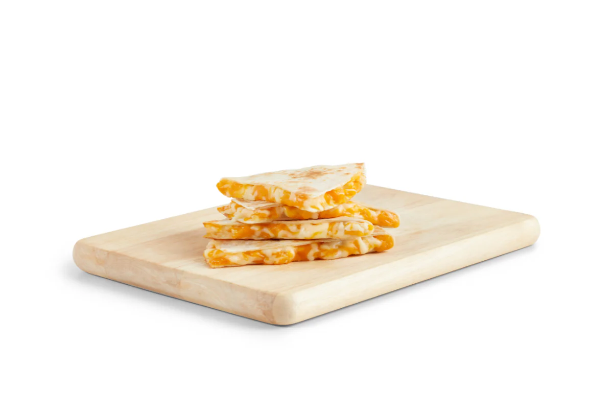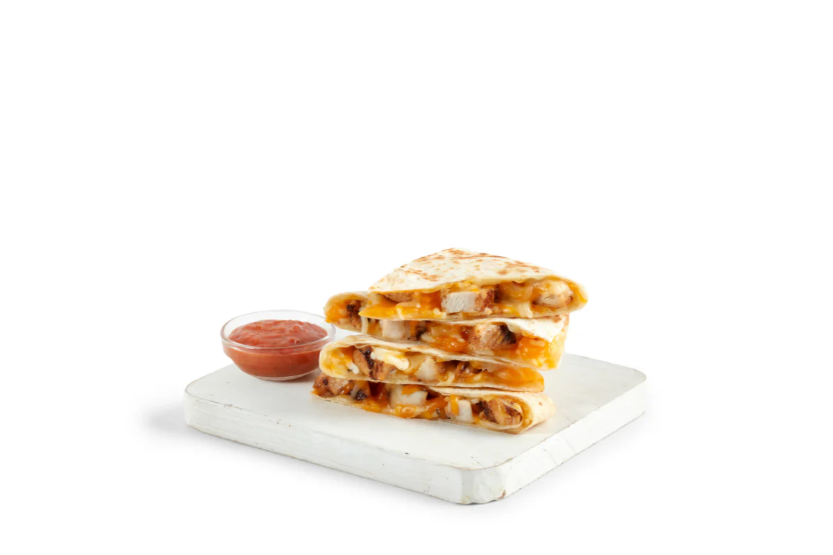 mozzarella and cheddar on a pressed flour tortilla. Add chicken for an additional charge
